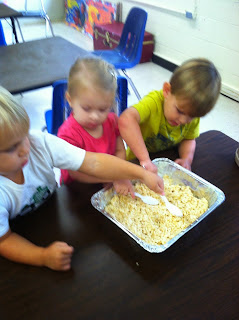 With bright eyes and brilliant minds, these young ones learned how to make Rice Krispy Treats with a box of cereal, a bag of marshmallows, some butter, a few bowls and some baking pans. We pressed a few buttons and bellowed out numbers and watched as our bellies waited with anticipation to gobble up these yummy goodies.