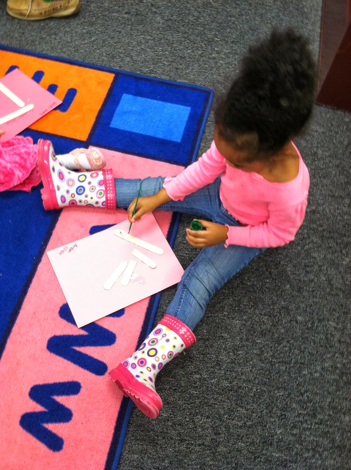 On Friday, Mr. Verdie read "Spaghetti and Meatballs for All!". This book was about a family who wanted to feed a lot of people but had to figure out how many tables and chairs would be needed to seat everyone comfortably. Boy was it a big job and always changing. Then, we answered the question of the day and made our very own chairs with popsicle sticks and painted them too. Thanks, Mr. Verdie and Ms. Ross, we really loved this activity and book!!!
