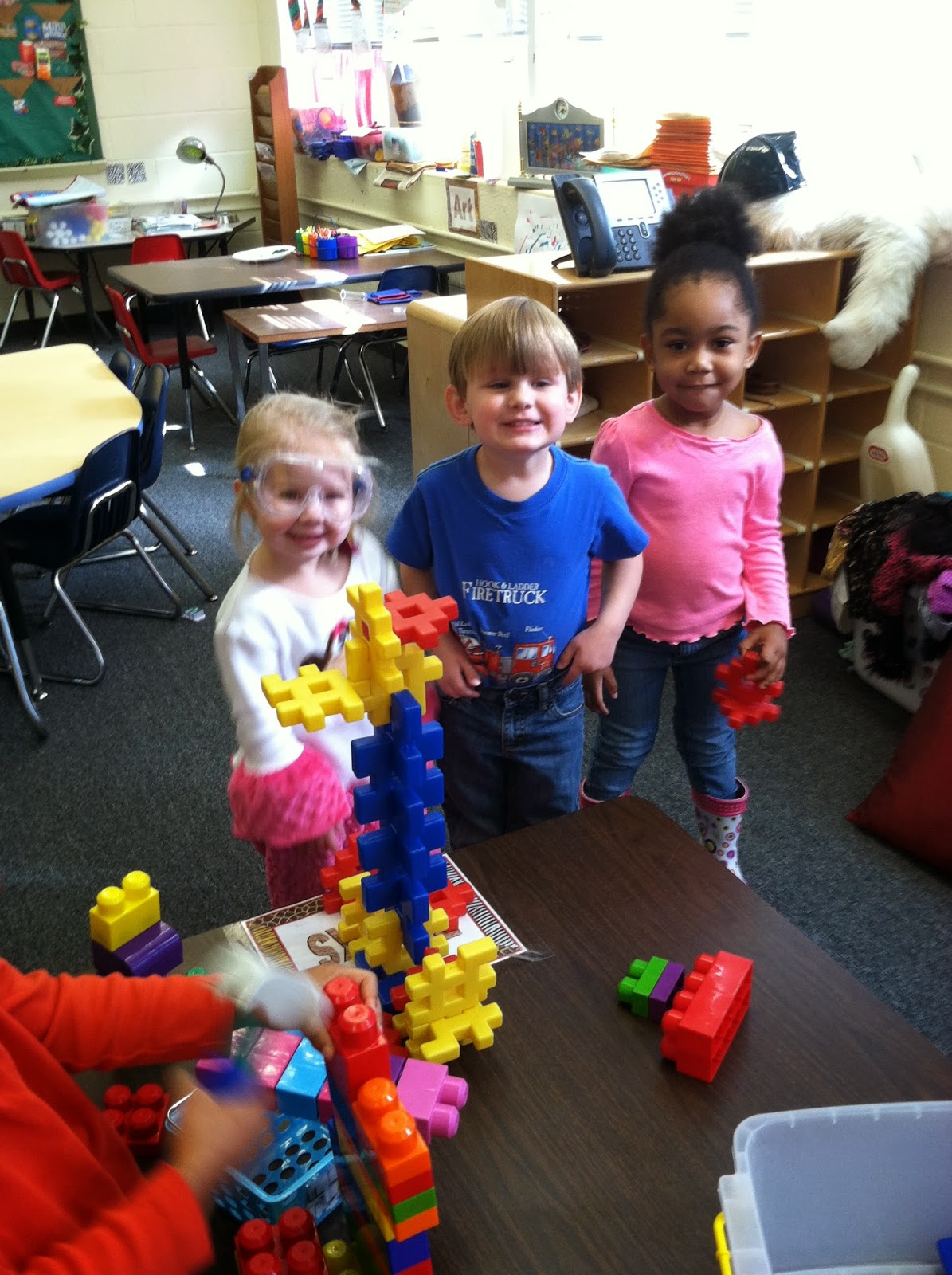 We read "The Three R's: Reuse, Reduce, Recycle" book this morning. We are really enjoying learning how to take care of our planet. Then, we had a really radical time reading, building, remodeling, and dressing up as our favorite community helpers. We are growing very fast and enjoying every moment.